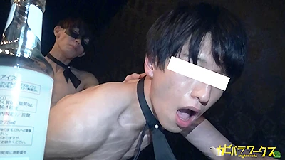 新企画!!今宵もHAPPENING BARはオープン、、、開店したばかりのお店で待機するスタッフ達。少し時間がたちお客様が1人ご来店!あの人気モデルの変態ドM君が!!どんなお店かもわからず興味本位でやってきたご様子。まずは一杯進められ乾杯!!お店のコンセプトの説明を聞いていると、とりあえず着替えてと言われいきなり服を脱がされていく。戸惑いながらも従いプレイ場所へご案内されると陰湿に責められていく彼。徐々に本性が現れどんどん声をだし感じはじめていく彼を見たスタッフ達はさらに挑発し檻に閉じ込めてしまう始末!檻をムチでバシバシ叩かれ怖がっていると次はそのまま熱々の蝋燭が登場!!ポタポタといっぱい体全体に垂らされると「ぁあッッ!!!」熱がりながらもちんこは元気に勃起状態!!さすがドMくん!!次は公開アナルSEX!!見られているのにより興奮するのか声を荒げ感じ狂っていく!!あまりの激しいピストンに床にぐったりと倒れこむ彼だが容赦なく次の体位に変え正上位でガン掘られ!!「はやく二人の精子くださぃいい〜〜〜〜////」すでに覚醒しおかしくなっている彼。大量の精子をぶっかけてもらいすぐに自分も発射しタチの男も勢いよく噴射しぶっ掛けるッ!!【この作品はカピバラワークスからの委託商品です】※メインモデルに目線・顔モザイクはございません。