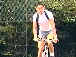 公園でケツワレ露出サイクリング。見られ好きのスポーツマンがケツマン拡げた後は。巨根をしごかれ爆射ザーメンを鮮明に見せつける!【この商品はチークスからの委託商品です】