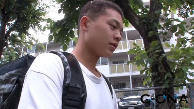 またまた街角でUb*r君をゲットです!まだまだあどけなさの残る男子という感じの彼は18歳!受け答えもしっかりした好青年です☆スタジオに着きまずはインタビュー。報酬を餌に手コキの了承を得たのでAVを見ながら待機してもらいます。現れたゴーグルマンに身体を触られると、既に股間は元気になってます!さすが18歳!!