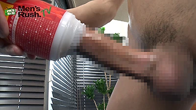 初登場!引き締まった身体の巨根青年がでっかいチ〇コをオナホで扱く!
