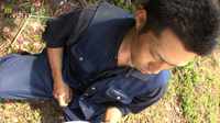 ガテン系ノンケが仕事サボって野外オナニー☆