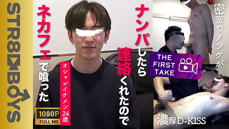 【THE FIRST TAKE-街ナンパ編-】イマドキオシャレイケメン24歳を街ナンパ!!連絡きたからネカフェで喰っちゃったww雄フェラ受入れD-KISSまでしちゃう変態っぷり!