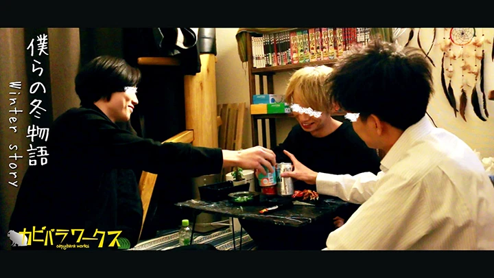 僕シリーズから最新作が登場!今回は3人の男のとある冬物語。幸せな日常をすごしていた二人の同性カップル。ある日の帰宅時に外で寒そうに誰かをまっている男性。それを横目に見ながらも自宅へと。ふと宅配ボックスを確認しにいき、さっきの男性の事がきになり外へいくとまだ待っていたから声を掛ける。事情をきき寒いからという事で部屋へ招きいれ他愛もない会話をしてるところで、携帯がなり「同居人が帰ってくるっぽい」という事で、帰宅した同居人とハグしキスを、、、せっかくだから3人で飲むことになり意気投合し仲良くなったところで、彼は二人の関係性について気になり聞いてみると付き合ってると堂々と答える二人。そんな二人を軽蔑するでもなく笑顔で受け入れる男性。これから3人の冬物語が幕を開ける。。。この物語の結末はいかに。。全二部作の前編、後編となっております。後編は12月3週目からの配信開始予定となります。【この作品はカピバラワークスからの委託商品です】※本編に目線・顔モザイクはございません。