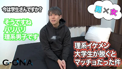 今回来てくれたのは見た目が少しチャラそうな大学生くん!こう見えて理系というのだから少し驚きですw好きな科目は理論物理、女の子よりも物理が好きな彼に今回は女の子とSEXしてもらいました!さっそく乳首から責めて責められる理系イケメンくん、可愛いパーカー姿も良いのだが脱ぐと鍛えられた身体が!理系でイケメンでマッチョというパーフェクトな彼は女の子の高速手コキに少しイキそうにwクンニをして射精をちょっと我慢しつつ前戯を終え挿入していきます!まずは正常位で挿入!ゴツゴツとした上腕で支えながら猛烈ピストン!マッチョの正常位ほどエロいものはありません。そこからは女をオナホールのように穴として使ってガンガン突いていく理系イケメンくん!バックの時もケツが綺麗な桃尻で見てるだけでそそられます( ´ ▽ ` )バックと正常位を交互にこなした後はそろそろ理系イケメンくんも我慢の限界がきたのか最後は思いっきり射精!♂スッキリした後はイケメン度が増していた理系イケメンくん。終わった後の感想もユニークな解答をしてくれましたwノンケイケメンマッチョ好きな方にはお勧めできる一本になります( ´∀`)【この商品はG-ONAからの委託商品です】
