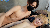 AVを見ながら仲良くシコってもらい勃起させたあとは、お互いのチンコを触り合い長さや硬さ、太さを確認し合います。他人のチンコを触るのはもちろんはじめてのため少し複雑な表情ですが気が付けばチンコはビンビンに!「それ、めっちゃ気持ちいい!ヤバい!」と声を出しながら「先に俺のことイかせて。」とスーさんがおねだり。カズマ君が手コキをしてあげると「乳首も攻めてほしい。」とスーさんがリクエスト。最後は両乳首を攻められながら大量射精!これにはカズマ君も「めっちゃいっぱい出た!!」と驚きの様子を隠せません。