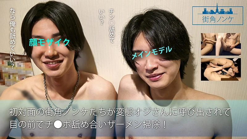 初対面の街角ノンケたちが変態オジさんに呼び出されて目の前でチ●ポ舐め合いザーメン掃除!