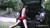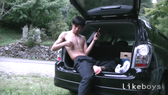 今回は野外に停めた車とその近くで全裸オナニー!!鳥の鳴き声が響く車が来そうにない場所・・・スマホでエロサイトを見ながら興奮を高めて様子をうかがうたくやクン!いつものように自らの身体を撫で回し乳首を攻めてチンポを勃たせてパンツ一枚で見事な勃起を見せつけ!車の荷台でチンポをシコシコ!非日常の風景がエロさを倍増させる!激しく自分のチンポをシコシコシコシコ!!今回もやはり途中車の音で興奮倍増!「あぁ〜ん!!イクぅ〜っ!!」と大声を上げてきょうも精液をぶちまける!手にべっとりついた精液を見せてエンド!今度機会があったら一緒に絡んでみたい!エロいたくやクンでした!【この作品はライクボーイズからの委託商品です】