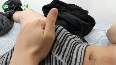 20歳の現役大学生が初めての撮影に挑戦。私服姿のまま股間を揉んで声を漏らしながらパンツ姿に!膨らみ具合からもちょっと大きくなってるのが想像できます。そんな中、乳首を弄りながらパンツ越しにチ〇コを刺激している彼・・・勢いよくパンツを脱ぐとちょっとどころかビンビンでした(笑)